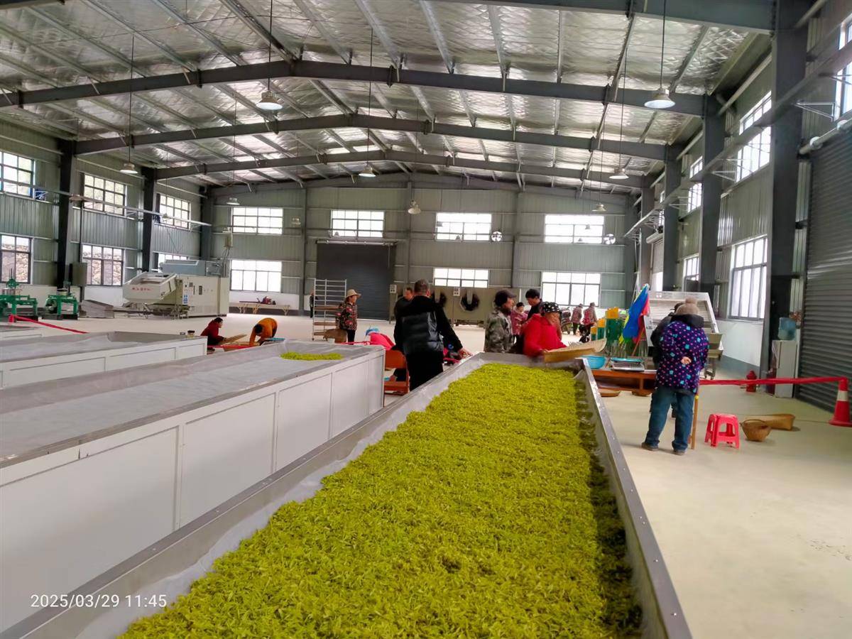 在1300平方米的現(xiàn)代化茶葉加工廠內(nèi),殺青機(jī)、烘干機(jī)正開足馬力運(yùn)轉(zhuǎn)。今年是洋坪鎮(zhèn)品種黃茶規(guī)?;庸ふ{(diào)試生產(chǎn)的第2年,預(yù)計(jì)可生產(chǎn)干茶1000斤,產(chǎn)值近60萬(wàn)元。