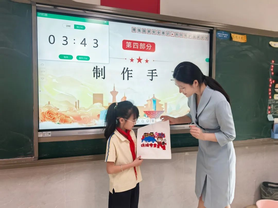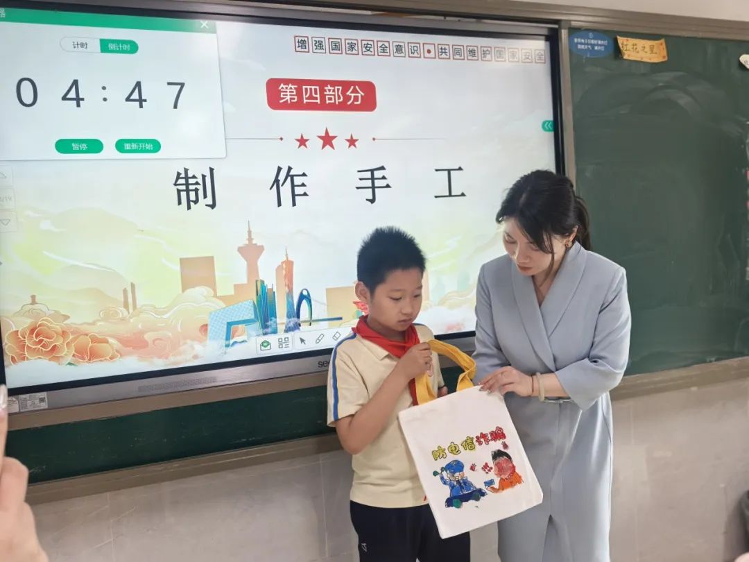 活動中,同學(xué)們還拿起水彩筆DIY安全教育主題帆布袋。他們有的繪制象征國家安全的盾牌與長城,有的描繪交通安全標(biāo)志,還有的寫下“國家安全,人人有責(zé)”的標(biāo)語。一幅幅童趣盎然的畫作,將抽象的安全理念轉(zhuǎn)化為看得見的行動宣言。許多同學(xué)表示:“這個帆布袋要每天帶著,提醒自己做個安全小衛(wèi)士!”