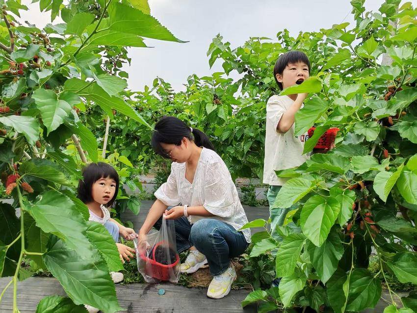 每年4月至6月上旬,是桑葚成熟的季節(jié)。走進(jìn)采摘園,濃郁的果香撲鼻而來,顆顆桑葚色澤誘人、飽滿多汁。前來采摘的游客們提著小籃,穿梭在桑樹林間,精心挑選成熟果實,拍照打卡、品嘗美味,沉浸式體驗田園生活的閑適與美好。不少游客表示,這里不僅能親近自然,還能讓孩子體驗勞動的樂趣,是周末休閑的好去處。