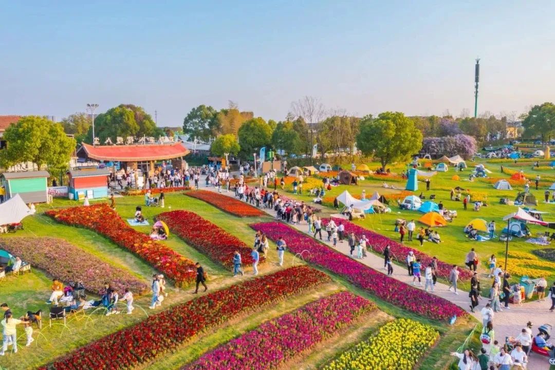 五月的武漢花博匯,宛如一幅絢麗的春日畫(huà)卷。馬鞭草紫浪翻涌,玫瑰、月季嬌艷欲滴,大花蔥亭亭玉立,繽紛花海成為游客們的 “打卡圣地”。一頂頂帳篷點(diǎn)綴其間,人們?cè)诖隋忮死寺汗?,用鏡頭定格美好瞬間。景區(qū)內(nèi)人頭攢動(dòng),拍照的快門(mén)聲此起彼伏,熱門(mén)打卡點(diǎn)前排隊(duì)等候的游客隊(duì)伍蜿蜒如長(zhǎng)龍。