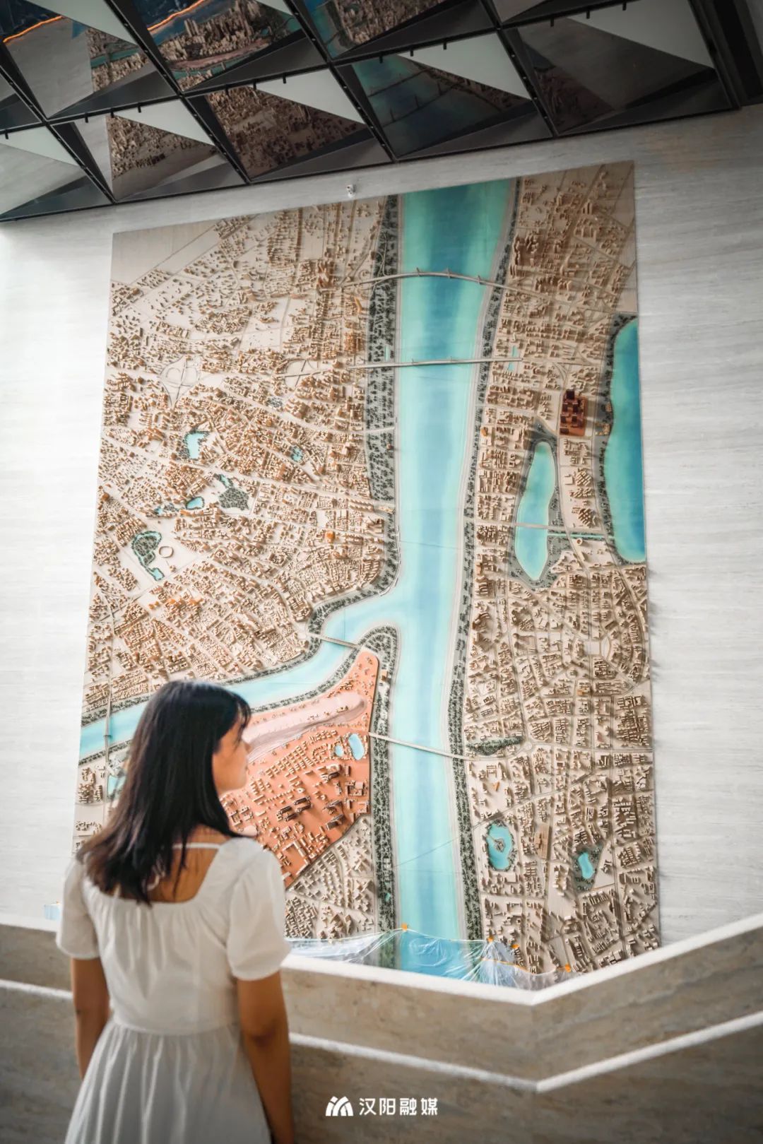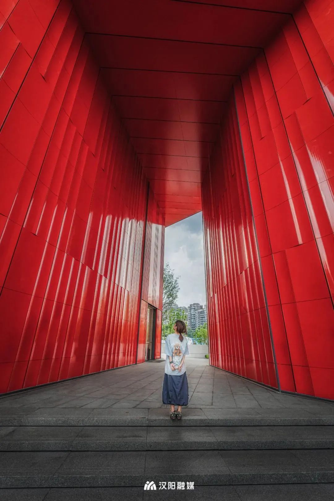 巨大紅框建筑面朝長江,矗立在漢陽古城文化軸的端點,眼前是“唯見長江天際流”的盛景,背后是超1400年歷史的顯正街延伸而去。