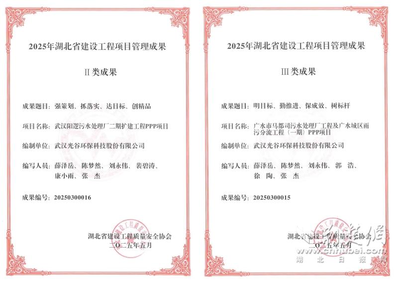 荊楚網(wǎng)(湖北日報網(wǎng))訊(通訊員 董高宣)近日,湖北省建設(shè)工程質(zhì)量安全協(xié)會召開2025年度湖北省建設(shè)工程項目管理成果交流發(fā)布會。湖北聯(lián)投東湖高新集團旗下光谷環(huán)保申報的兩項成果,分別斬獲項目管理成果Ⅱ類獎、Ⅲ類獎。