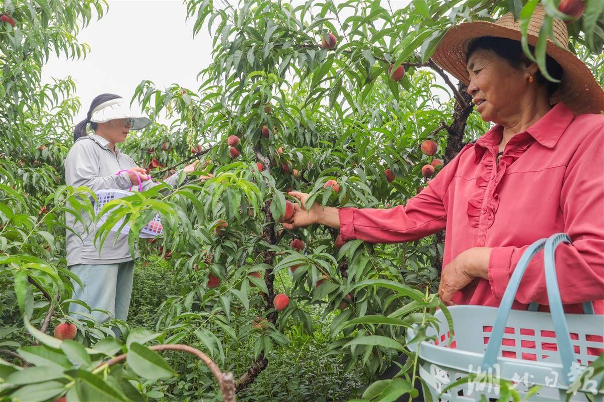 6月10日,游客在卓爾桃花驛小鎮(zhèn)采摘蜜桃。(湖北日報(bào)通訊員 陳超 攝)