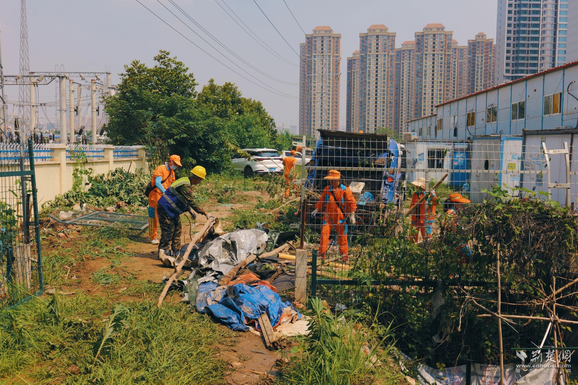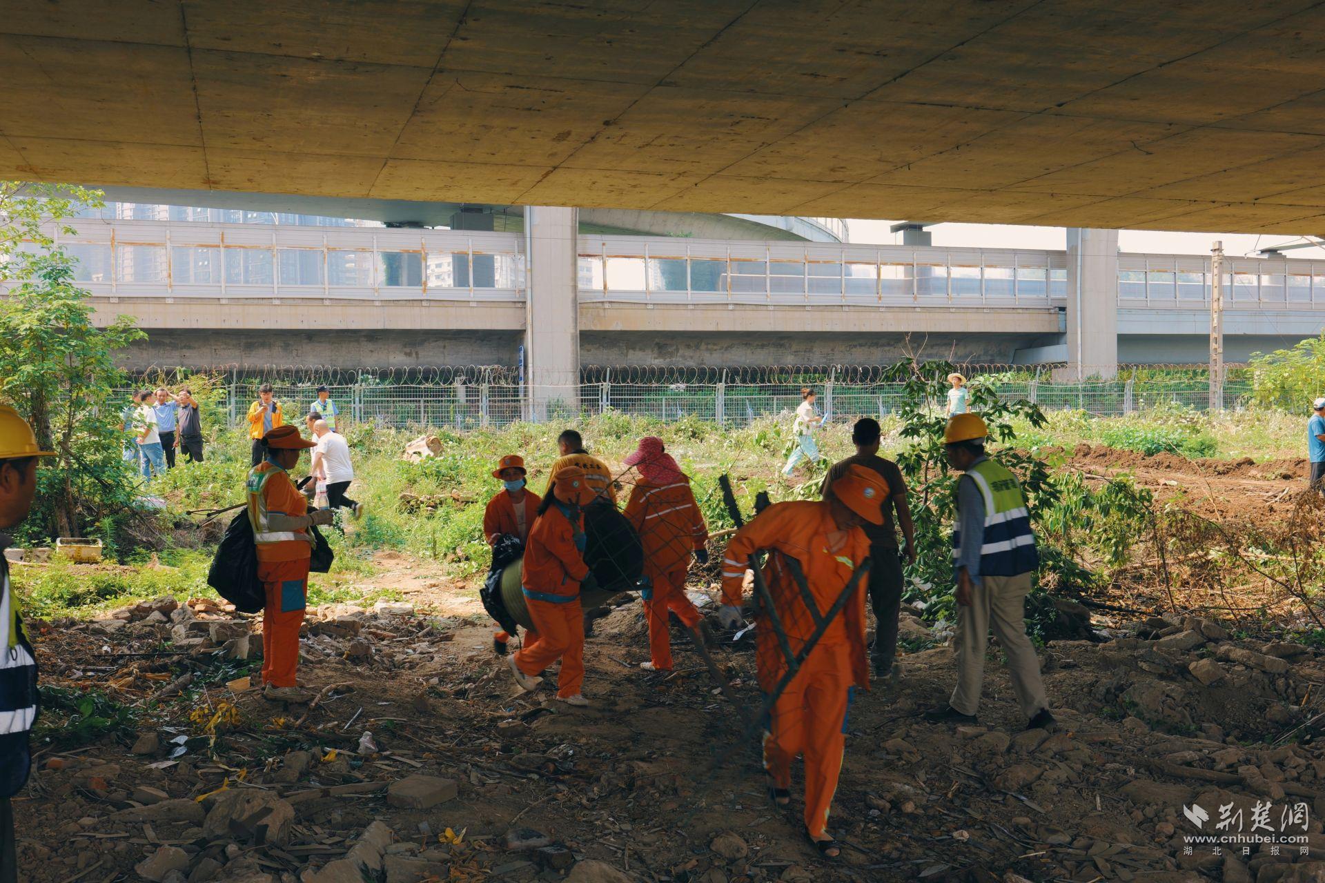 在區(qū)城管局牽頭動員下,執(zhí)法人員、環(huán)衛(wèi)力量聯(lián)合新村街道的干部職工、社區(qū)工作人員及武漢高鐵工務(wù)段技術(shù)人員以及公安干警們,共同組成200余人的攻堅(jiān)隊(duì)伍,同時(shí)調(diào)度3臺大型挖掘機(jī)和4輛垃圾清運(yùn)車,對鐵路橋下約3200平方米的“臟亂差”區(qū)域展開了拉網(wǎng)式清理。