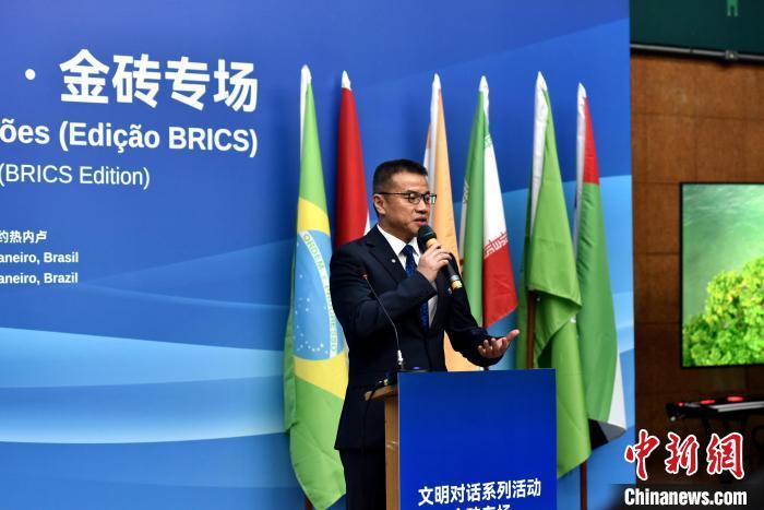 當?shù)貢r間6月27日,文明對話系列活動(金磚專場)在巴西里約熱內盧舉行。中國海油巴西公司總經(jīng)理黃業(yè)華在金磚國家友好故事會上演講。中新社記者 林春茵 攝