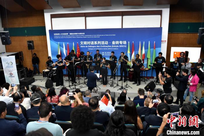 當?shù)貢r間6月27日,文明對話系列活動(金磚專場)在巴西里約熱內盧舉行。中企資助的巴西科帕卡巴納要塞管弦樂團進行開幕演出。中新社記者 林春茵 攝
