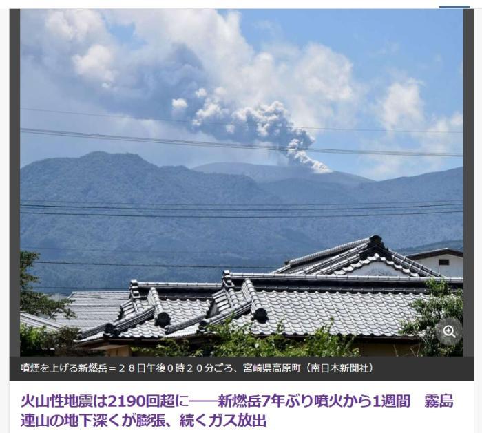 中新網(wǎng)6月29日電 據(jù)日本《南日本新聞社》報道,位于日本九州地區(qū)的新燃岳火山在當?shù)貢r間27日噴發(fā),該火山自22日時隔7年再度噴發(fā)以來,一周內(nèi)已連續(xù)發(fā)生了超2000次火山性地震。
