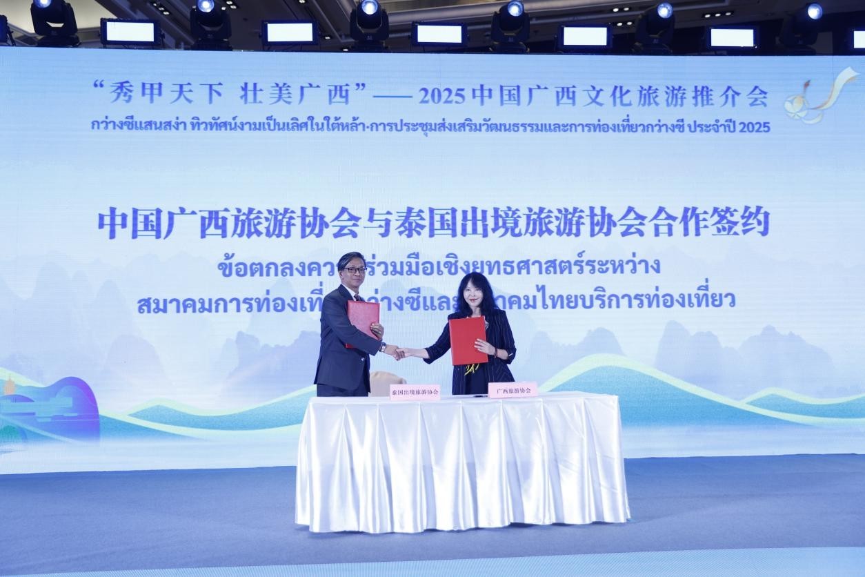中國(guó)廣西旅游協(xié)會(huì)與泰國(guó)出境旅游協(xié)會(huì)合作簽約儀式。中國(guó)廣西壯族自治區(qū)人民政府供圖
