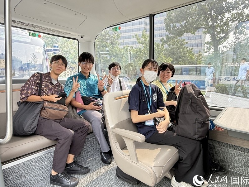 沖繩大學(xué)生訪華團(tuán)試乘無(wú)人駕駛小巴。人民網(wǎng)記者 陳思攝