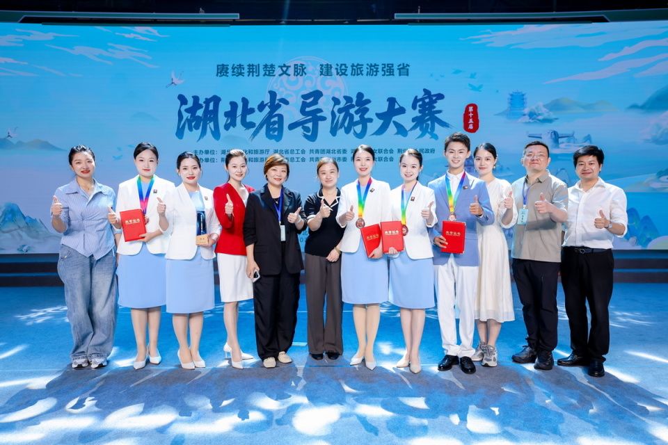 在長江經(jīng)濟帶高質(zhì)量發(fā)展與中部地區(qū)崛起戰(zhàn)略深入推進的關鍵節(jié)點,湖北省第十五屆導游大賽于6月24日至28日在荊州市圓滿舉辦。這場以“賡續(xù)荊楚文脈?建設旅游強省”為主題的行業(yè)盛會,不僅是湖北導游人才的巔峰對決,更是全省文旅產(chǎn)業(yè)對標國家戰(zhàn)略、邁向國際一流的重要實踐,為建設世界知名文化旅游目的地注入強勁動力。經(jīng)過4天激烈對決,武漢代表隊張玲、荊州代表隊曹寰蓓、十堰選手張凡榮獲湖北省第十五屆導游大賽金獎。武漢市代表隊張玲獲得本屆導游大賽最佳講解獎、最佳創(chuàng)作獎,黃岡市代表隊楊歡獲得本屆導游大賽最佳服務獎,宜昌市代表隊鄭芙蓉獲得本屆導游大賽最佳風采獎。