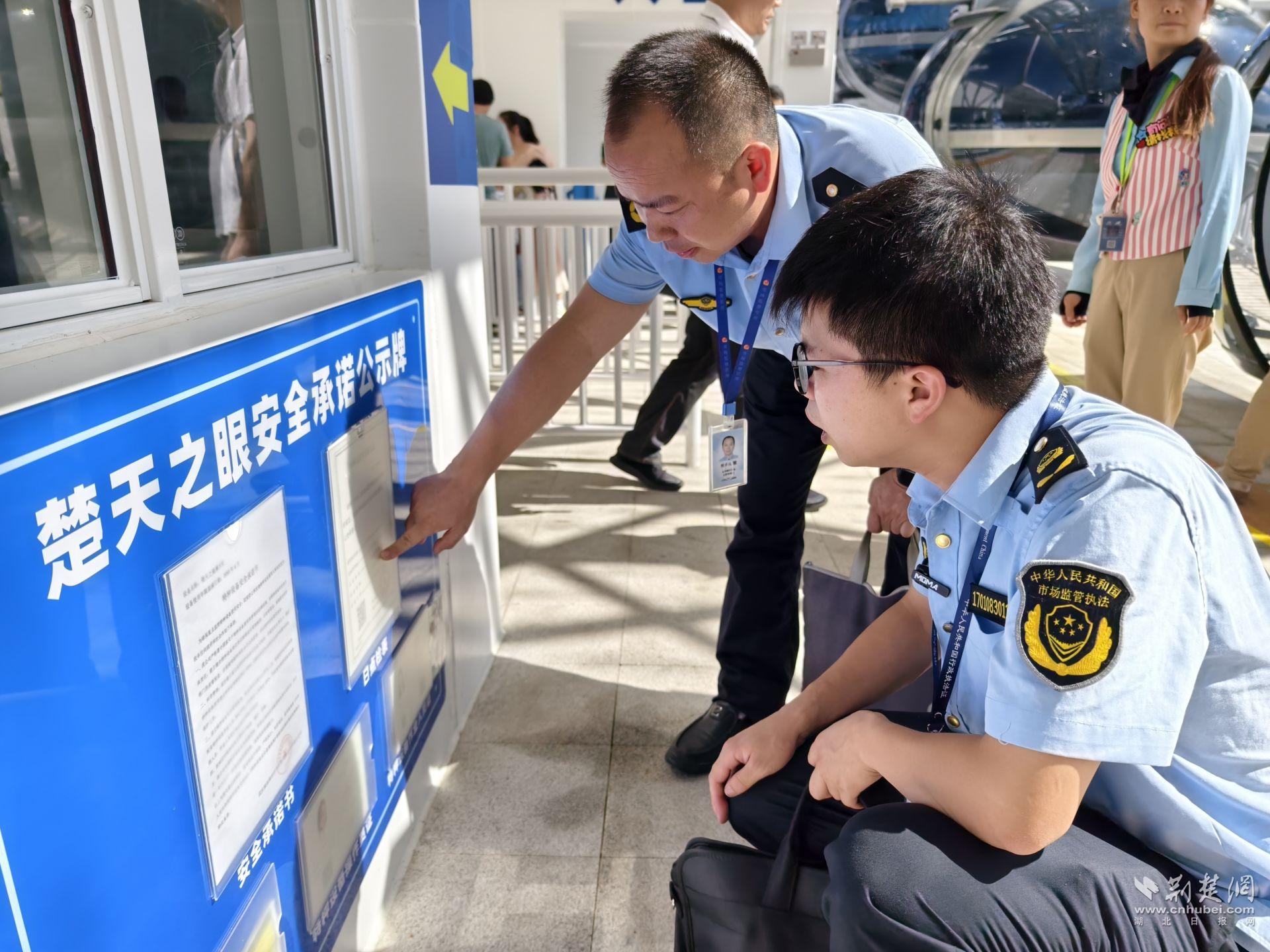 “喂!能聽見嗎?”東西湖區(qū)市場監(jiān)管局執(zhí)法人員程豐元乘坐全景“太空艙”到達(dá)最高處,按下艙內(nèi)“緊急對(duì)講”,測試報(bào)警設(shè)施通話中,地面值班室工作人員迅速應(yīng)答,溝通清晰流暢。經(jīng)檢查,在 10 人以內(nèi)的承載情況下,轎廂門啟動(dòng)關(guān)閉正常,空調(diào)運(yùn)行良好,報(bào)警電話暢通無阻,各項(xiàng)設(shè)施均具備運(yùn)行開轉(zhuǎn)條件。