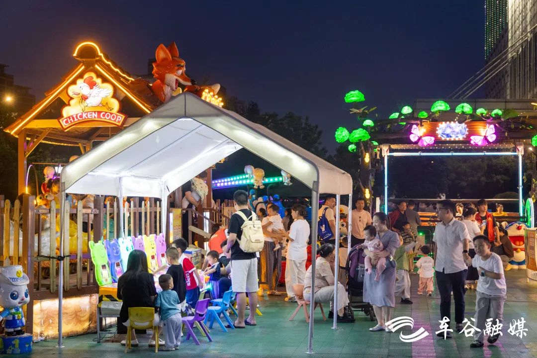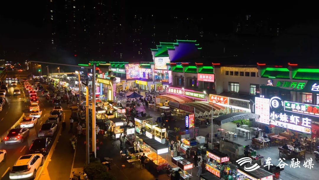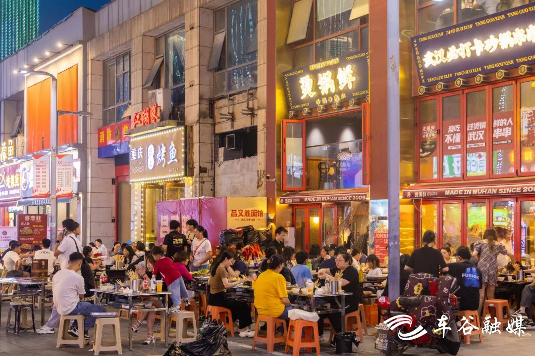 網(wǎng)紅集裝箱集市上,人們?nèi)宄扇海峙跄滩?,聊天、散步,打工人迎來一天中最松弛的時刻。不遠處,兒童樂園傳來陣陣歡笑,快樂氣球屋、小雞快跑是孩子們的最愛。萬達金街上,烤串、麻辣燙飄香,耳邊傳來“走,去擼串!”“快來,吃油燜大蝦!”