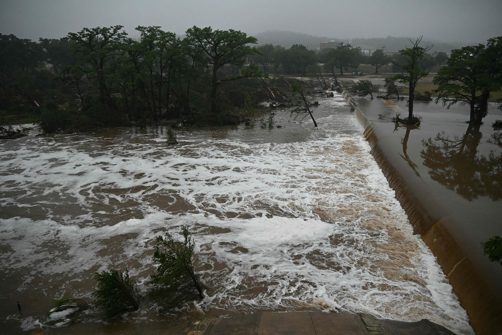 美國國家氣象局說,4日凌晨,瓜達(dá)盧普河水位3小時(shí)內(nèi)上漲約6.7米,之后因水位過高水位儀無法測量。(央視記者 劉驍騫)