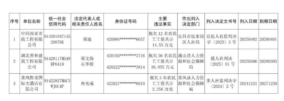 為進(jìn)一步加大對重大勞動(dòng)保障違法行為的懲戒力度,強(qiáng)化社會(huì)輿論監(jiān)督,維護(hù)勞動(dòng)者合法權(quán)益,根據(jù)《重大勞動(dòng)保障違法行為社會(huì)公布辦法》(人力資源和社會(huì)保障部令第29號(hào))和《拖欠農(nóng)民工工資失信聯(lián)合懲戒對象名單管理暫行辦法》(人力資源和社會(huì)保障部令第45號(hào)),現(xiàn)向社會(huì)公布2025年第二批重大勞動(dòng)保障違法行為案件及拖欠農(nóng)民工工資失信聯(lián)合懲戒對象名單。