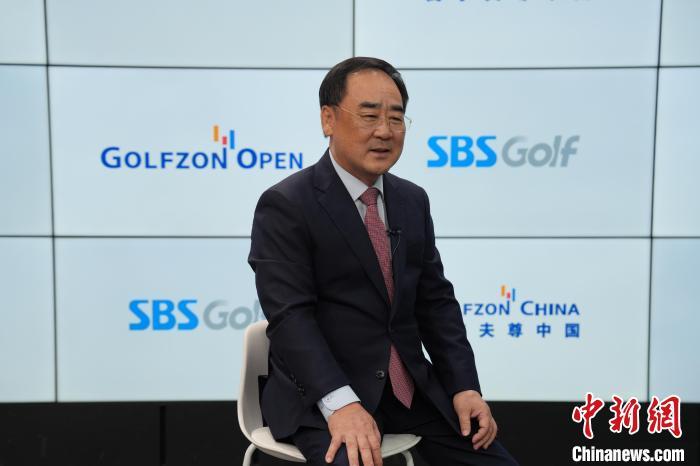 7月14日,“高爾夫尊中國公開賽”賽事轉(zhuǎn)播權(quán)簽約儀式在首爾舉行。圖為高爾夫尊中國會(huì)長樸英祚在簽約儀式接受媒體采訪。中新網(wǎng)記者 劉旭 攝