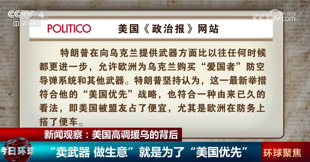 央視網(wǎng)消息:“賣武器,做軍火生意”,這也是美國(guó)總統(tǒng)特朗普近兩天一再?gòu)?qiáng)調(diào)的,他稱通過(guò)北約向?yàn)蹩颂m提供“愛(ài)國(guó)者”系統(tǒng)等武器,符合其一貫堅(jiān)持的“美國(guó)優(yōu)先”原則。美國(guó)國(guó)防部分析師直言,這么做還可以進(jìn)一步消耗其他北約國(guó)家的資源。