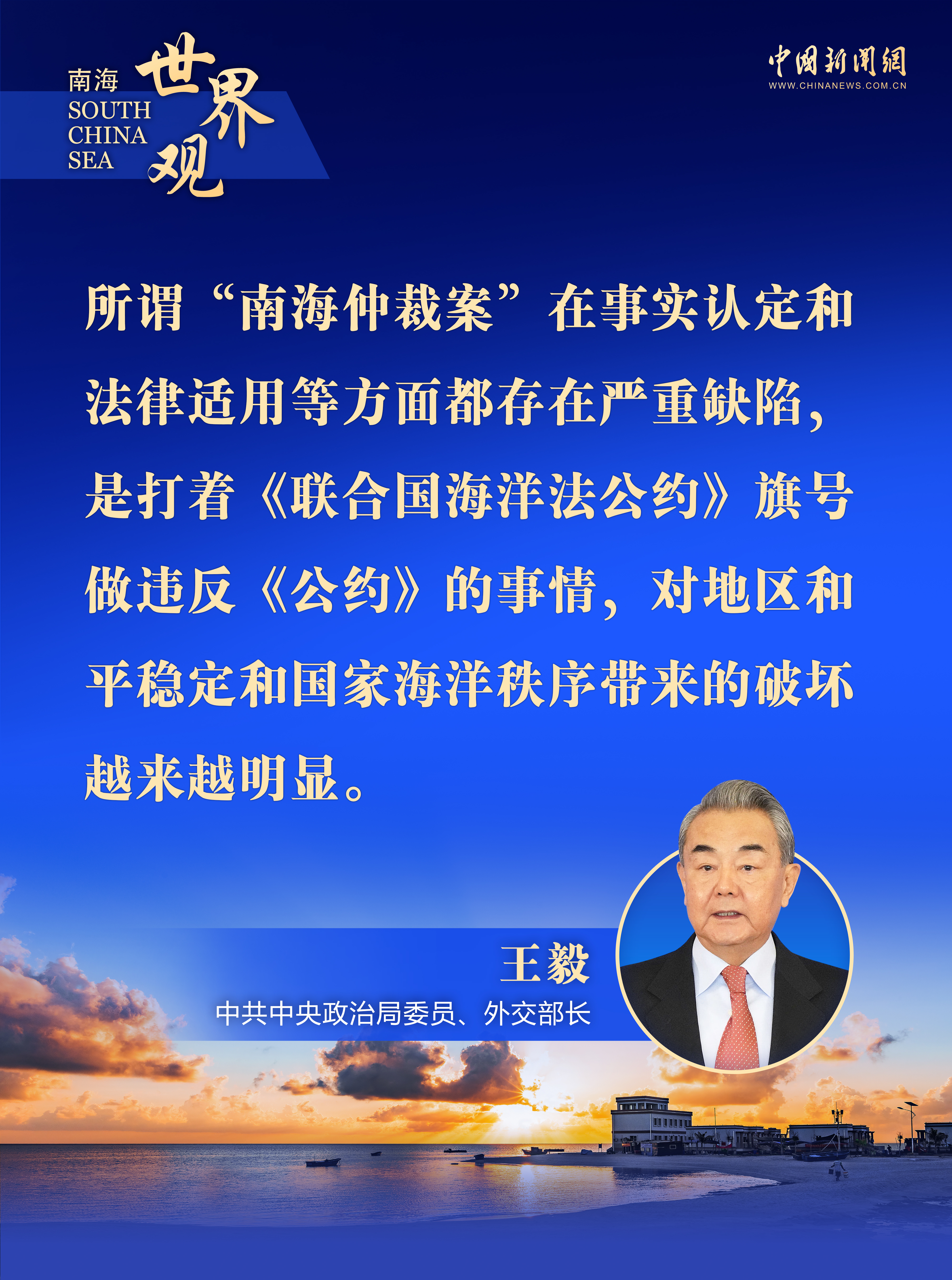 談及2016年菲律賓單方面提起的所謂“南海仲裁案”,王毅表示,相關(guān)“裁決”在事實(shí)認(rèn)定和法律適用等方面都存在嚴(yán)重缺陷,是打著《聯(lián)合國(guó)海洋法公約》旗號(hào)做違反《公約》的事情,對(duì)地區(qū)和平穩(wěn)定和國(guó)家海洋秩序帶來(lái)的破壞越來(lái)越明顯。