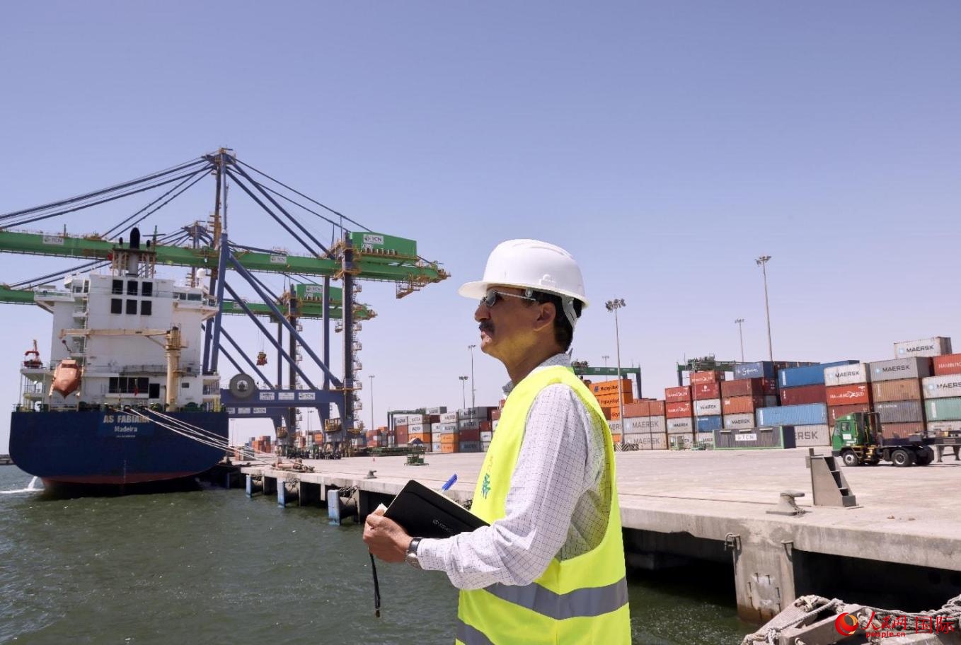 友誼港港務(wù)局局長(zhǎng)技術(shù)顧問(wèn)費(fèi)薩爾在現(xiàn)場(chǎng)巡視。人民網(wǎng)記者 管克江攝