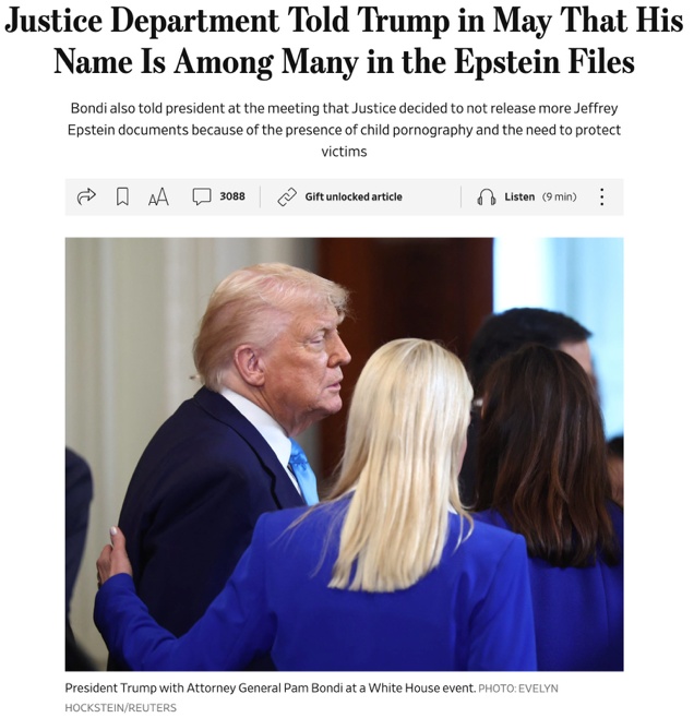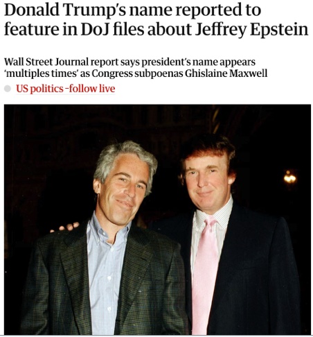 《華爾街日報》報道,司法部告知特朗普,“愛潑斯坦”檔案中有他的名字