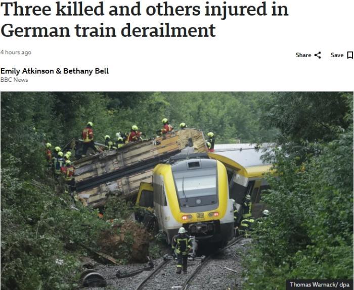 中新網(wǎng)7月28日電 據(jù)英國廣播公司(BBC)報(bào)道,德國警方27日晚通報(bào),該國西南部當(dāng)天發(fā)生一起火車脫軌事故,造成3人死亡,數(shù)人重傷。