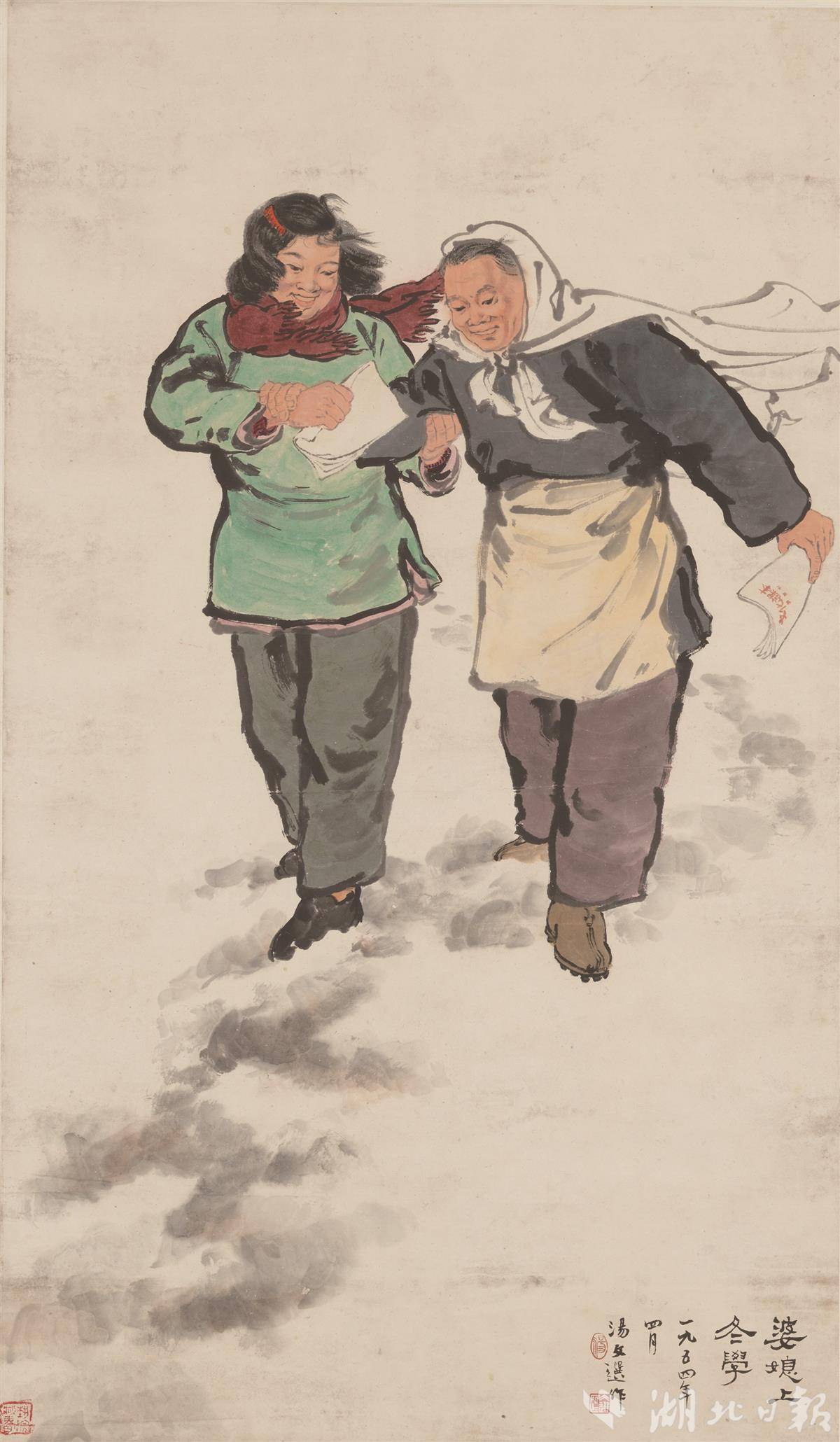 湯文選 《婆媳上冬學(xué)》 紙本設(shè)色