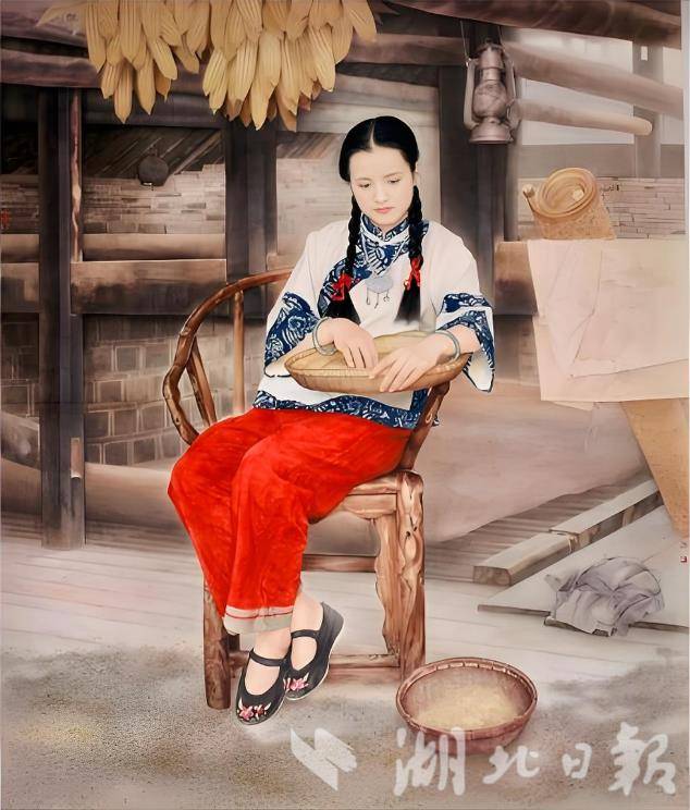 步入展廳,一幅幅美術(shù)史上的經(jīng)典作品及其描繪的美麗荊楚撲面而來。其中,湖北美術(shù)界前輩唐一禾創(chuàng)作的《江津?qū)懮弧访枥L了江津德感壩五十三梯的自然風(fēng)光,以細(xì)膩的筆觸勾勒出梯田如織、遠(yuǎn)山如黛的景象,層次分明、渾然天成。湯文選創(chuàng)作的《婆媳上冬學(xué)》表現(xiàn)婆媳二人在一個(gè)風(fēng)雪交加的傍晚相互攙扶趕去學(xué)文化的場景。李乃蔚《銀鎖》是深入鄂西農(nóng)村生活創(chuàng)作的佳作,描繪佩戴銀鎖的土家族少女形象,將中國畫寫實(shí)技巧推向新高度。此外,王曉愚作品《世紀(jì)三峽》、曹丹作品《陽光下的大橋澆筑工》等全國美展大獎(jiǎng)作品也集中展示。