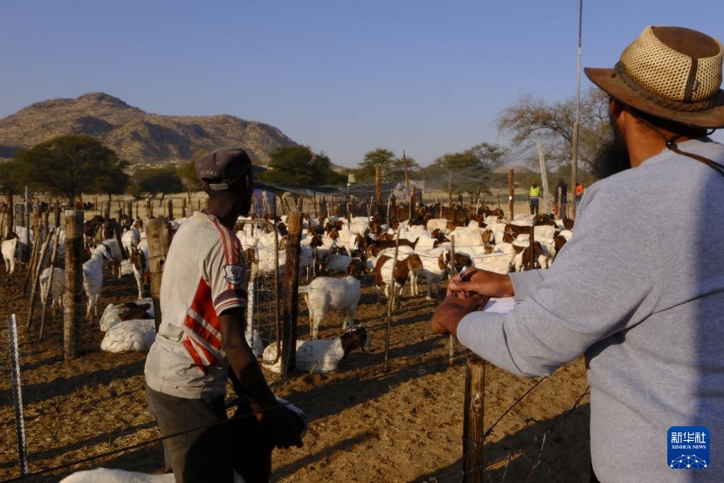 7月26日,在納米比亞烏薩科斯,“希望農(nóng)場”項(xiàng)目工作人員查看牲畜情況并進(jìn)行登記。新華社記者 林晶 攝