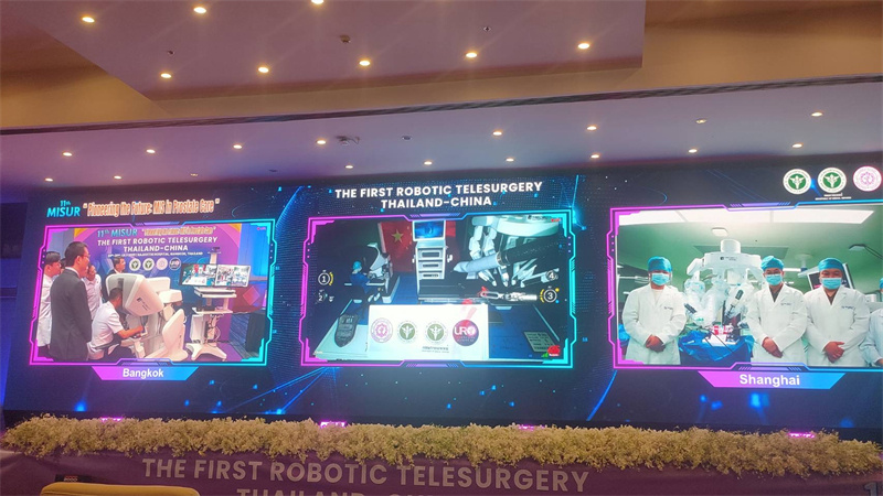 此次跨國手術(shù)由拉加維提醫(yī)院泌尿外科副教授塔內(nèi)·泰達(dá)隆博士在泰國操控圖邁機(jī)器人,對遠(yuǎn)在2800公里外上海的實(shí)驗(yàn)動(dòng)物進(jìn)行腎臟手術(shù)。手術(shù)過程圖像清晰、操作精準(zhǔn)、通信穩(wěn)定,全面展現(xiàn)了機(jī)器人在遠(yuǎn)程復(fù)雜手術(shù)操作中的可靠性與安全性。手術(shù)成功實(shí)施標(biāo)志泰國在機(jī)器人手術(shù)領(lǐng)域開展國際協(xié)作、遠(yuǎn)程醫(yī)療、外科培訓(xùn)等方面邁出關(guān)鍵一步,成為其推動(dòng)建設(shè)“國際醫(yī)療樞紐”及高端醫(yī)療服務(wù)中心戰(zhàn)略的重要里程碑。泰國衛(wèi)生部高層及來自國內(nèi)外的400余名泌尿外科專家出席并見證這一歷史時(shí)刻。