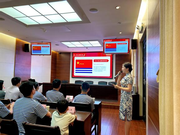 活動(dòng)伊始,辛亥革命博物院的老師為孩子們介紹了中國(guó)人民解放軍的光輝發(fā)展歷程、各種軍旗的設(shè)計(jì)含義及八一建軍節(jié)的由來(lái)和意義。隨后特邀武昌職業(yè)學(xué)院李亦偉教授、王浩然老師和朱世康老師進(jìn)行現(xiàn)場(chǎng)教學(xué)。李教授為孩子們講授了《捍衛(wèi)藍(lán)色疆域 爭(zhēng)做強(qiáng)國(guó)少年》的專題課程,王老師和朱老師則帶來(lái)了軍體特色科目——旗語(yǔ),孩子們認(rèn)真學(xué)習(xí),全情投入。現(xiàn)場(chǎng)還舉行了氣氛熱烈的國(guó)防知識(shí)競(jìng)答,大家專心聆聽(tīng),積極搶答問(wèn)題,現(xiàn)場(chǎng)氣氛熱烈而有序,表現(xiàn)優(yōu)異的小朋友獲評(píng)為“答題王”,并獲得了精美的獎(jiǎng)品。在互動(dòng)體驗(yàn)環(huán)節(jié),武昌職業(yè)學(xué)院楊洋隊(duì)長(zhǎng)為孩子們示范標(biāo)準(zhǔn)軍姿,并對(duì)孩子們進(jìn)行現(xiàn)場(chǎng)指導(dǎo)。隨后,孩子們以畫筆為媒,書寫下對(duì)人民子弟兵最誠(chéng)摯的敬意與祝福。湖北木蘭花社會(huì)服務(wù)中心副理事長(zhǎng)熊英聯(lián)手漢繡指導(dǎo)老師田宸輝向辛亥革命博物院捐贈(zèng)了漢繡黨旗和書法作品,以筆墨禮贊奮斗精神。