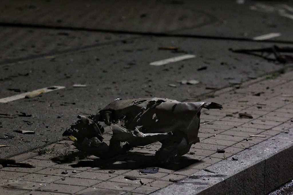 △烏克蘭基輔,地面上的俄羅斯無人機(jī)殘骸。
