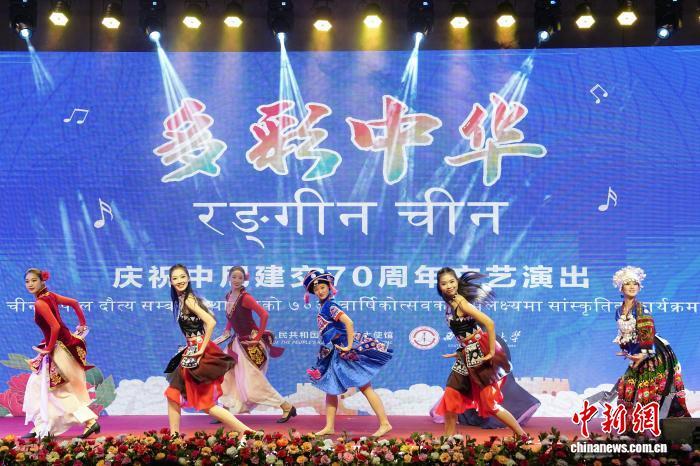 8月1日,中國駐尼泊爾大使館在尼首都加德滿都舉行中尼建交70周年招待會。圖為慶祝中尼建交70周年主題文藝演出。中新社記者 崔楠 攝