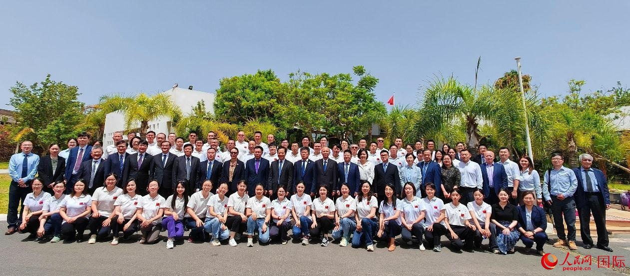 今年7月在摩洛哥首都拉巴特舉行的援摩中國醫(yī)療隊派遣50周年系列活動上,中摩嘉賓與中國醫(yī)療隊隊員代表合影。人民網記者 管克江攝