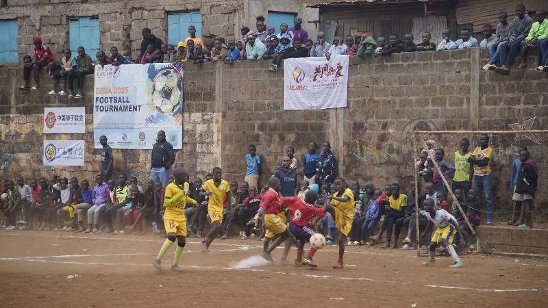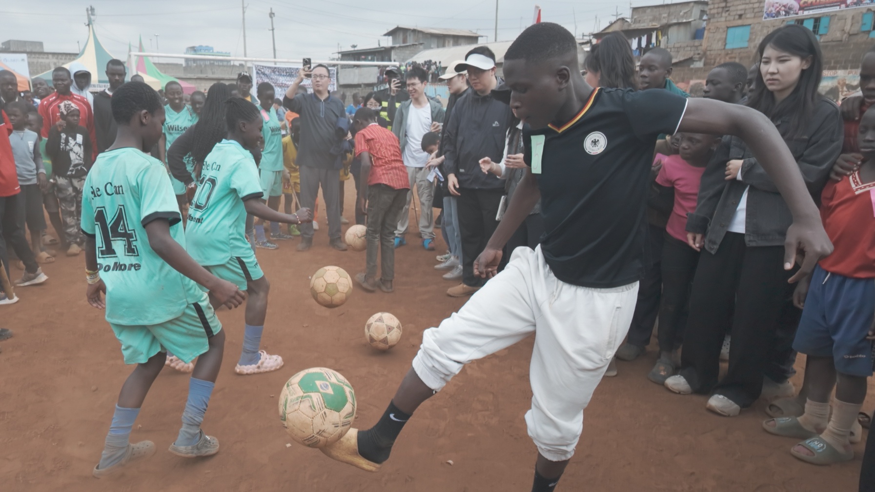 作為傳統(tǒng)重頭戲,本屆足球賽事的規(guī)模再創(chuàng)新高,共有24所社區(qū)學(xué)校的47支隊伍,在 94場激烈角逐后決出勝負。決賽現(xiàn)場氣氛熱烈,座無虛席。中國駐肯尼亞大使館在賽后舉辦的趣味“顛球比賽”環(huán)節(jié)更是吸引了眾多高手一展身手。