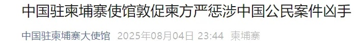 中使館:敦促柬方嚴(yán)懲涉中國(guó)公民案件兇手