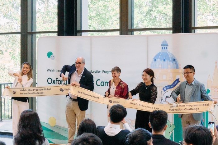 人民網(wǎng)倫敦8月6日電(徐量)當(dāng)?shù)貢r(shí)間8月5日,騰訊微信創(chuàng)新實(shí)驗(yàn)室全球探索計(jì)劃“牛津夏?!币约暗谒膶梦⑿判〕绦蛉騽?chuàng)新挑戰(zhàn)賽英國(guó)站在牛津大學(xué)正式啟動(dòng),來(lái)自中英教育界、文化界、媒體以及科技行業(yè)代表共五十余人出席開幕活動(dòng)。