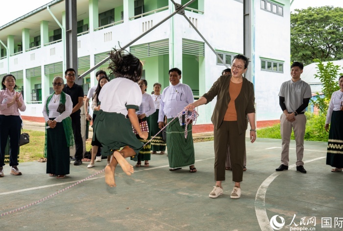 馬珈與內(nèi)比都第7中學(xué)學(xué)生交流。人民網(wǎng)記者 謝佳君攝