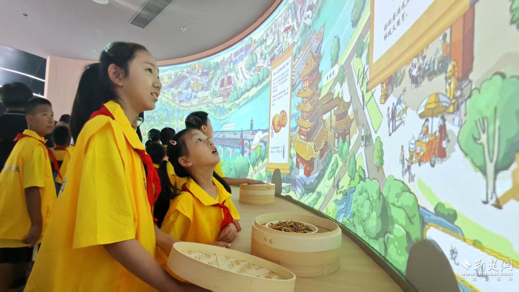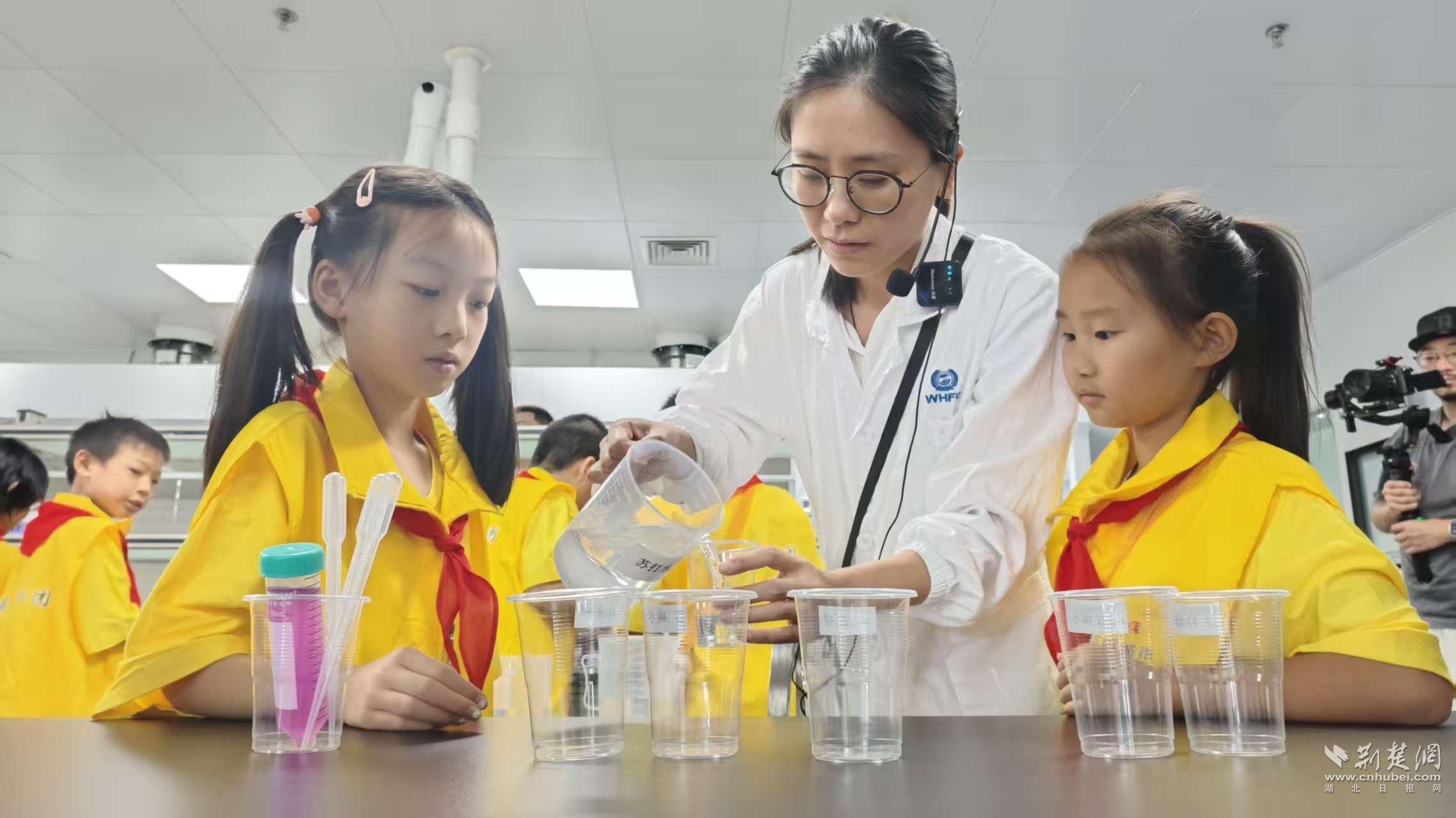 “小黃鶴觀察團(tuán)”的觀察員們?cè)谖錆h食品化妝品檢驗(yàn)所科普基地展廳,通過“聲、光、電”科技和多媒體技術(shù),沉浸式學(xué)習(xí)食品安全檢驗(yàn)檢測(cè)和營(yíng)養(yǎng)衛(wèi)生方面的科普知識(shí)。