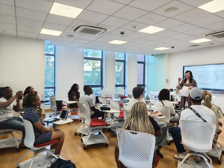 在上海杉達(dá)學(xué)院認(rèn)真聽HSK1課的訪華團(tuán)成員。上海杉達(dá)學(xué)院南非中國文化和國際教育交流中心孔子課堂供圖