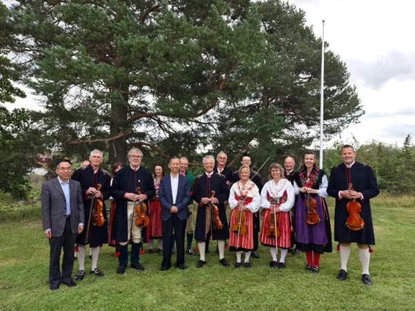 中國駐瑞典大使崔愛民與當?shù)厝藛T合影。中國駐瑞典大使館供圖