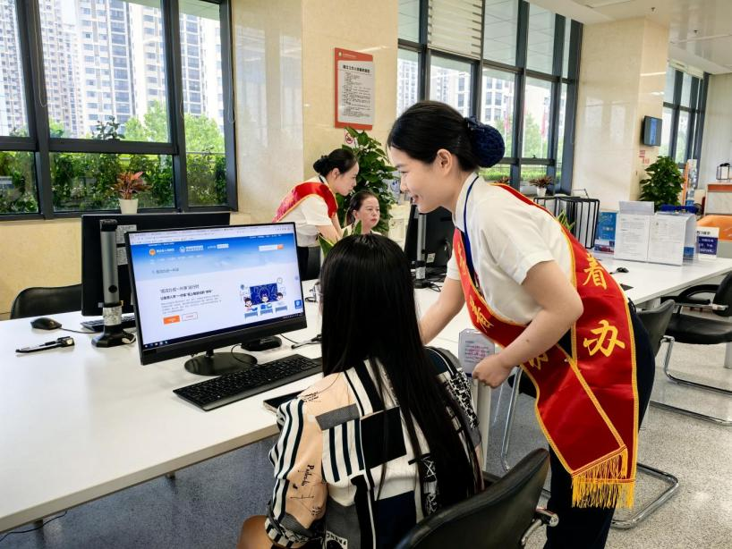 “孝著辦”幫辦人員見此情況,立即上前引導(dǎo)鄧女士來到自助填報區(qū),一邊耐心安撫她的情緒,一邊協(xié)助核驗戶口簿、房產(chǎn)證等報名所需的有效資料。隨后,通過湖北政務(wù)服務(wù)網(wǎng)中的教育入學(xué)“一件事”服務(wù)端口,僅用5分鐘就為孩子成功“鎖定”學(xué)位,完成了報名注冊手續(xù)。