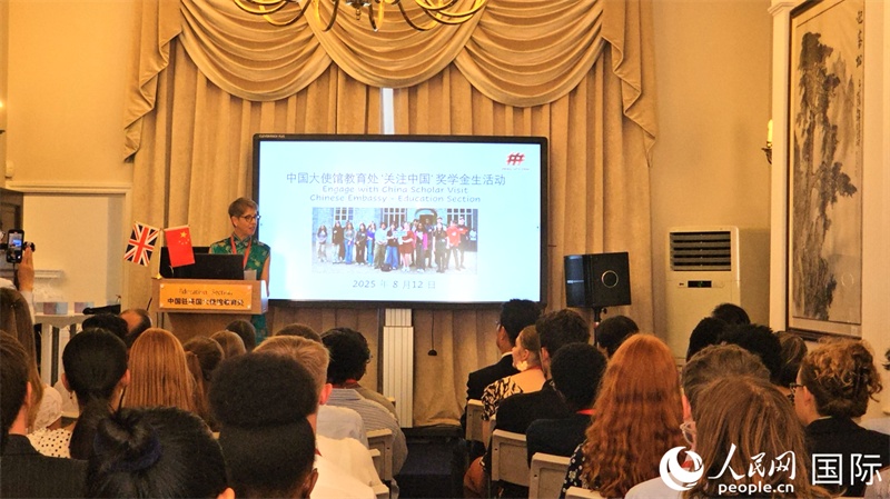 “關(guān)注中國”獎學(xué)金項目學(xué)生代表與中英教育界人士出席招待會。楊浩鵬攝