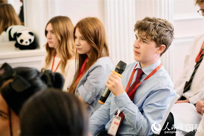 英國學(xué)生積極參與問答環(huán)節(jié)了解去中國學(xué)習(xí)的情況。楊浩鵬攝