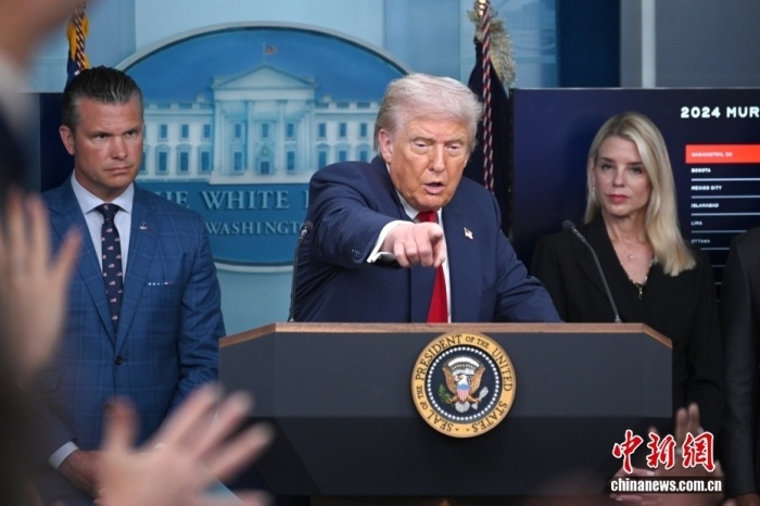 當(dāng)?shù)貢r(shí)間8月11日,華盛頓,美國(guó)總統(tǒng)特朗普在白宮召開記者會(huì)。中新社記者 陳孟統(tǒng) 攝