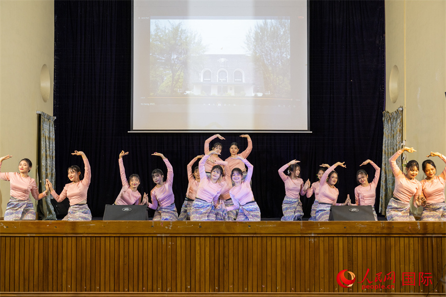 仰光大學(xué)學(xué)生在中緬文化交流會(huì)上表演。人民網(wǎng)記者 謝佳君攝