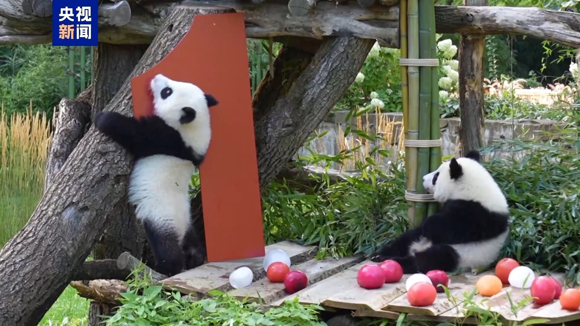 當(dāng)?shù)貢r(shí)間22日,柏林動(dòng)物園為旅德大熊貓雙胞胎“ 夢(mèng)好”和“ 夢(mèng)甜 ”慶祝一周歲生日。這對(duì)大熊貓姐妹于2024年8月22日出生,是雌性大熊貓“夢(mèng)夢(mèng)”在德國(guó)誕下的第二對(duì)雙胞胎。