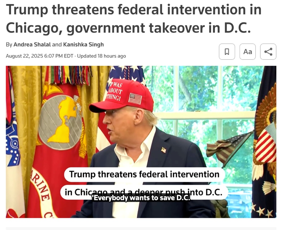 當(dāng)?shù)貢r(shí)間8月22日,美國(guó)總統(tǒng)特朗普表示,不排除宣布進(jìn)入國(guó)家緊急狀態(tài)的可能,并強(qiáng)調(diào),如有必要,將對(duì)目前華盛頓特區(qū)的30天聯(lián)邦管控進(jìn)行延長(zhǎng),同時(shí)點(diǎn)名芝加哥和紐約,批評(píng)這兩座城市“一片混亂”,暗示可能采取類似措施。此番表態(tài)迅速在美國(guó)社會(huì)引發(fā)爭(zhēng)議與震動(dòng)。