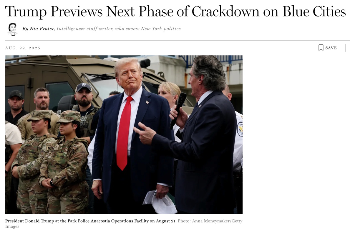 同時(shí),特朗普點(diǎn)名華盛頓、芝加哥、紐約這類由民主黨主政的大城市,意在放大“民主黨治理失敗”的印象。芝加哥常被貼上“槍支暴力與治安崩壞”的標(biāo)簽,紐約既是特朗普的故鄉(xiāng),也是民主黨與主流媒體的象征性舞臺(tái)。這些選擇既有象征意義,也能放大政治對(duì)比,強(qiáng)化“只有我能恢復(fù)秩序”的選戰(zhàn)話語(yǔ)。