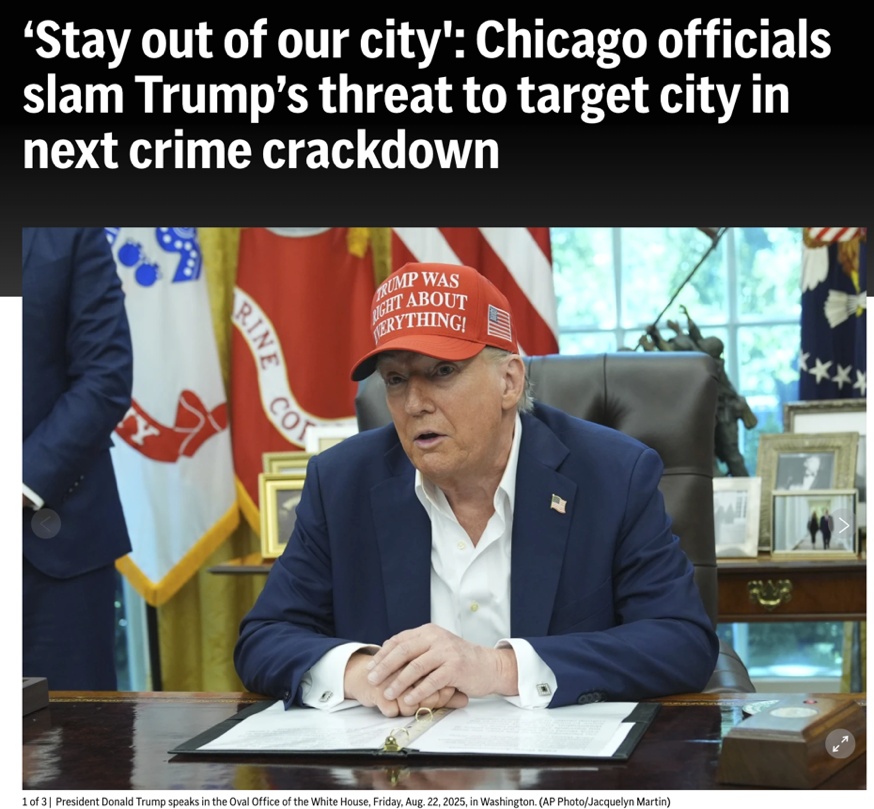△美聯(lián)社報(bào)道,芝加哥官員抨擊特朗普對(duì)芝加哥的威脅,并稱“別來(lái)我們城市”。