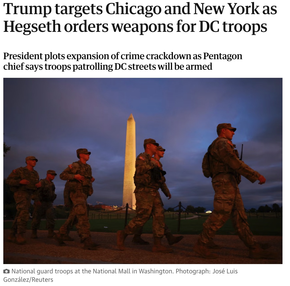 △《衛(wèi)報(bào)》報(bào)道,特朗普表示不排除宣布進(jìn)入國(guó)家緊急狀態(tài)的可能,并點(diǎn)名芝加哥和紐約“一片混亂”,表示芝加哥是下一個(gè)目標(biāo)。