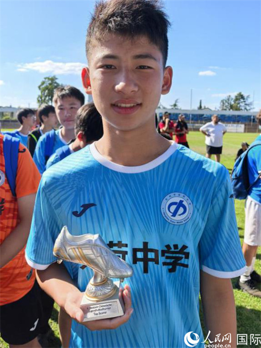 來自杭州市采荷中學(xué)足球隊的張澤亨同學(xué)榮獲本次邀請賽“最佳射手”稱號。人民網(wǎng)記者 劉赫攝
